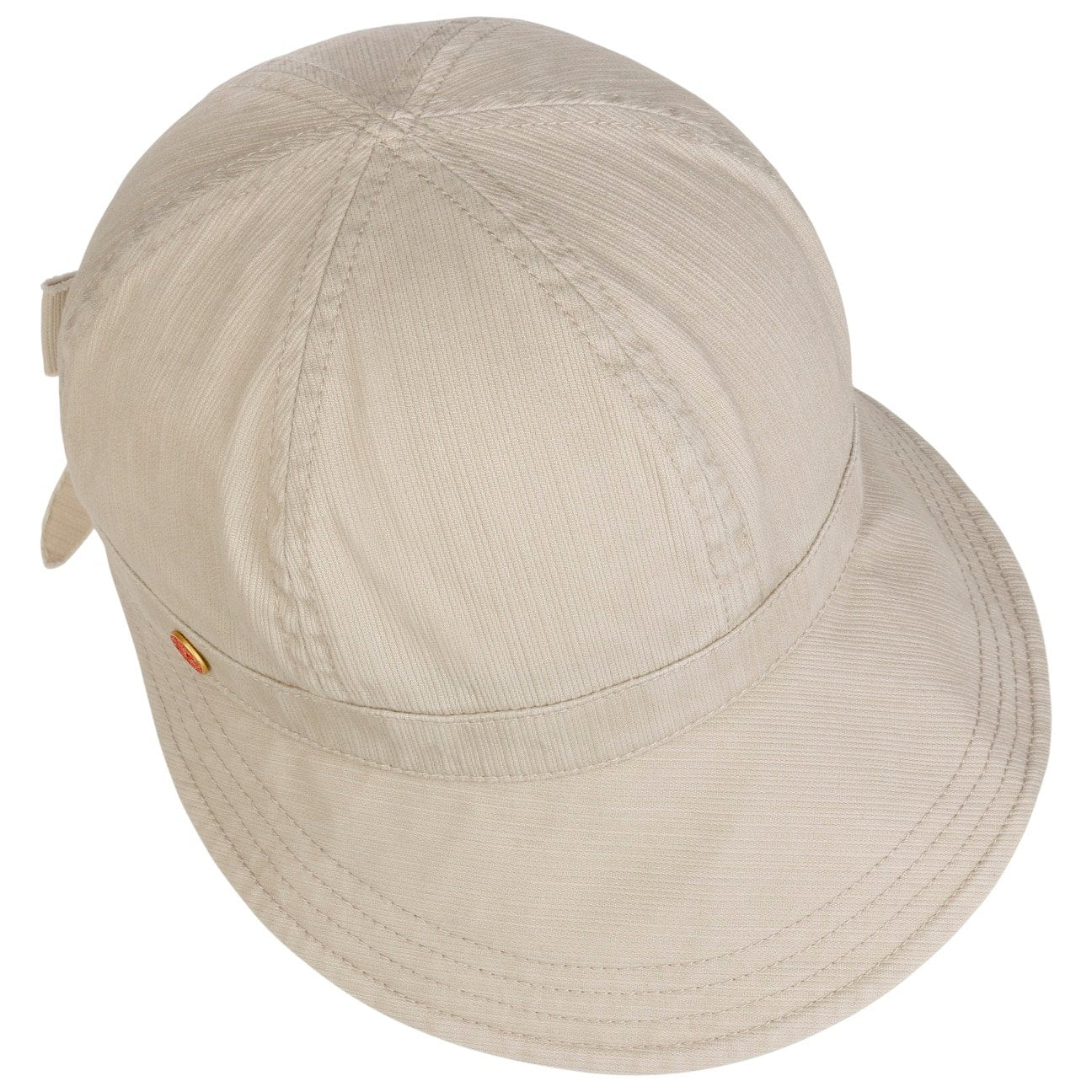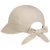 Die Kappe besticht durch ihr frühlingshaftes Design, das Komfort und Modernität vereint. Ein integrierter elastischer Gummizug auf der Rückseite sorgt für optimalen Sitz, während eine dekorative Schleife diesen geschickt verbirgt. Der angenehme Tragekomfort wird durch das Material aus reiner Baumwolle unterstützt. Die Kopfbedeckung zeichnet sich optisch durch ihre raffinierte Streifenstruktur aus und ist per Hand zu reinigen. Sie bietet zudem einen hohen UV-Schutz von 80 nach dem Hohenstein-Standard.
